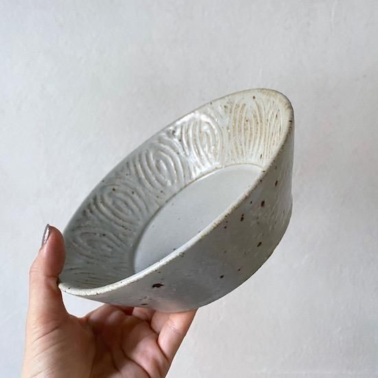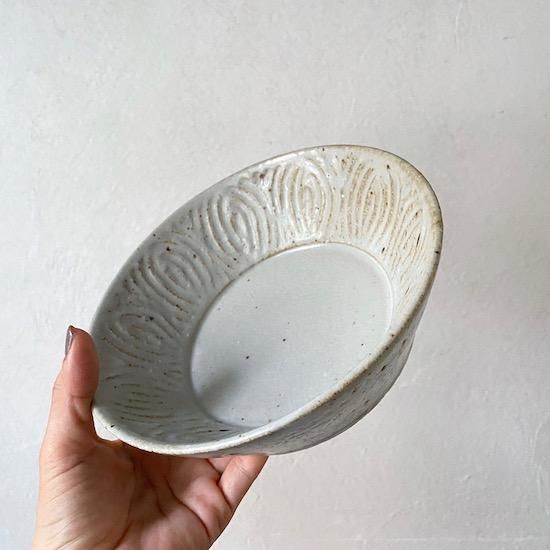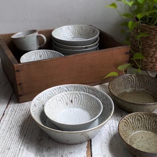 素朴な風合いで温かみのある、粉引の切立ちボウルです。