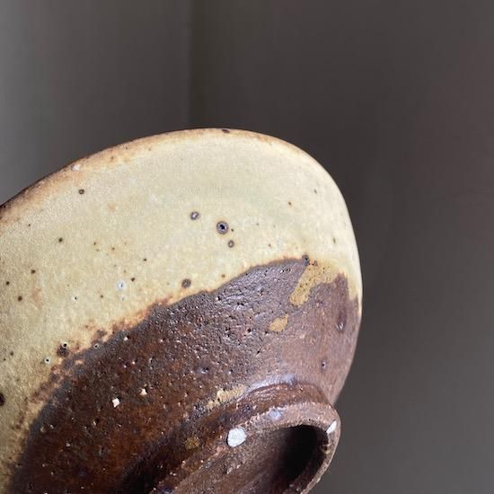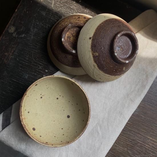 ブラウンと優しい卵色のようなお色の、掛け分けの飯碗です。