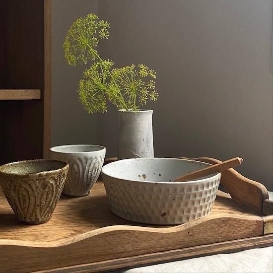 伊藤豊 ブロック紋 切立ボウル(M) 粉引