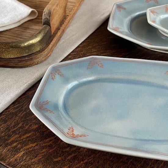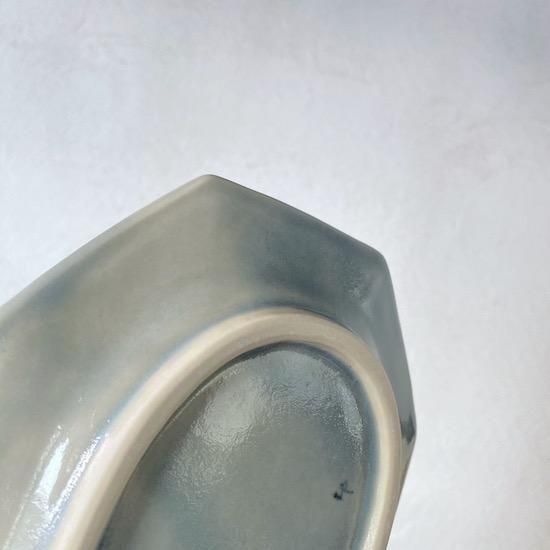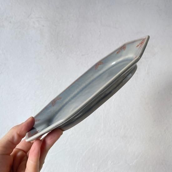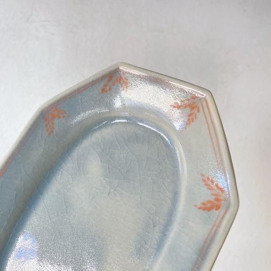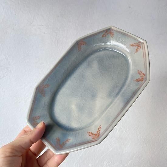 稲村真耶 渋蒼釉赤絵6.5寸長八角皿