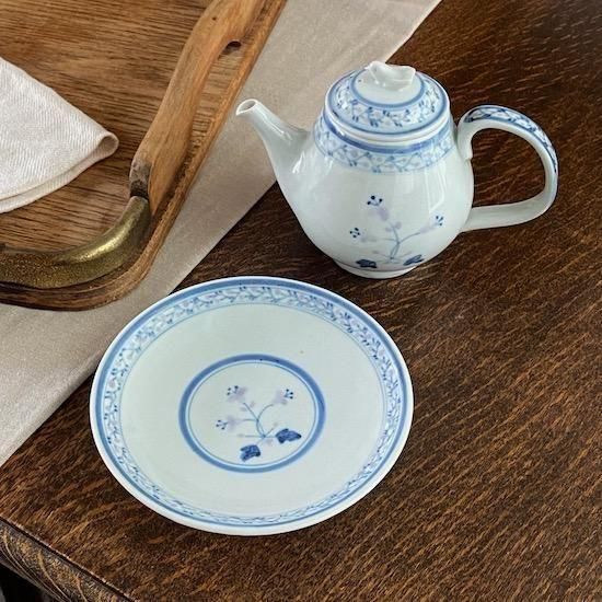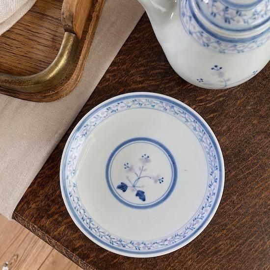 ぽってりとした質感の白磁に描かれた、アンティークのような花模様が素敵な