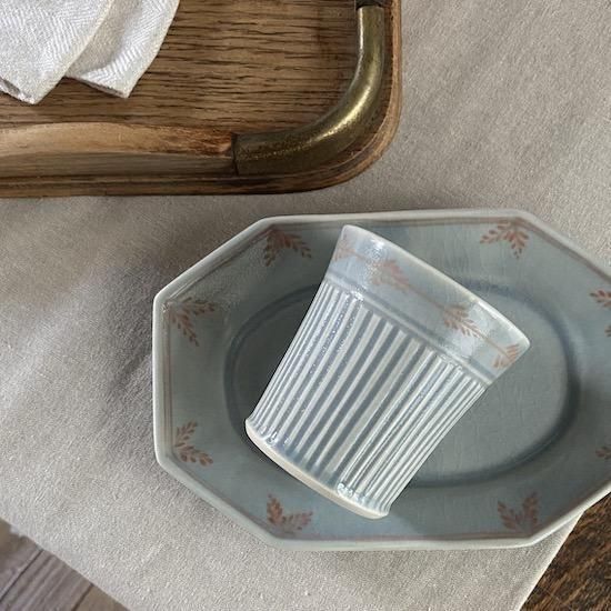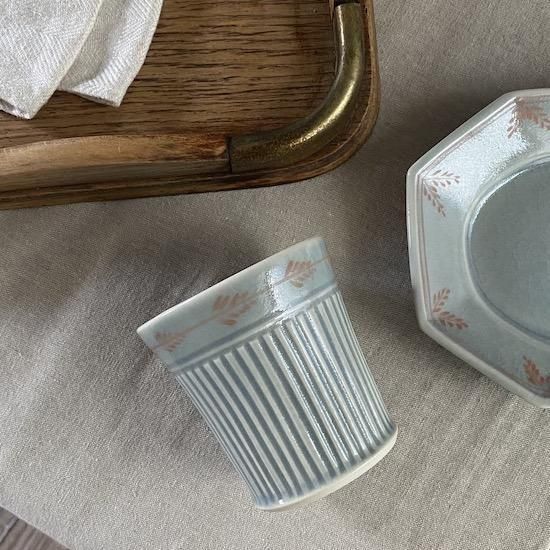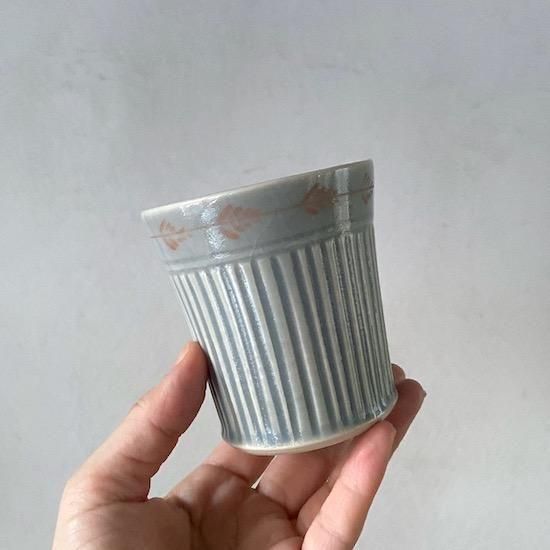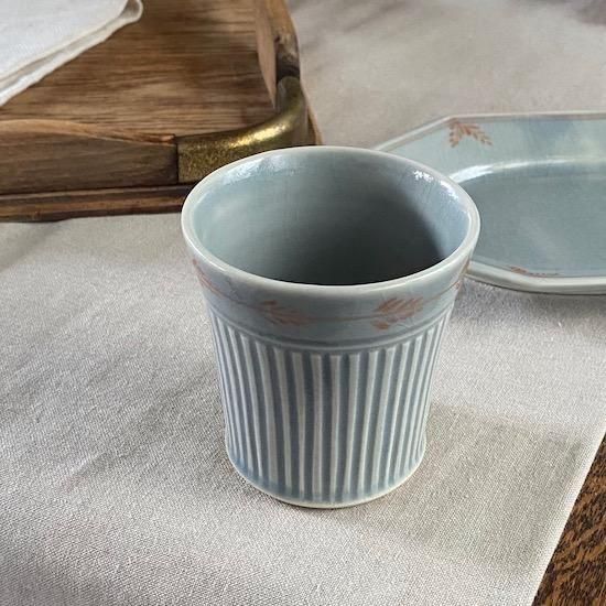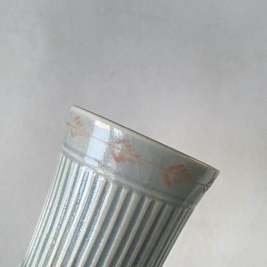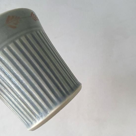 稲村真耶 渋蒼釉赤絵シノギカップ